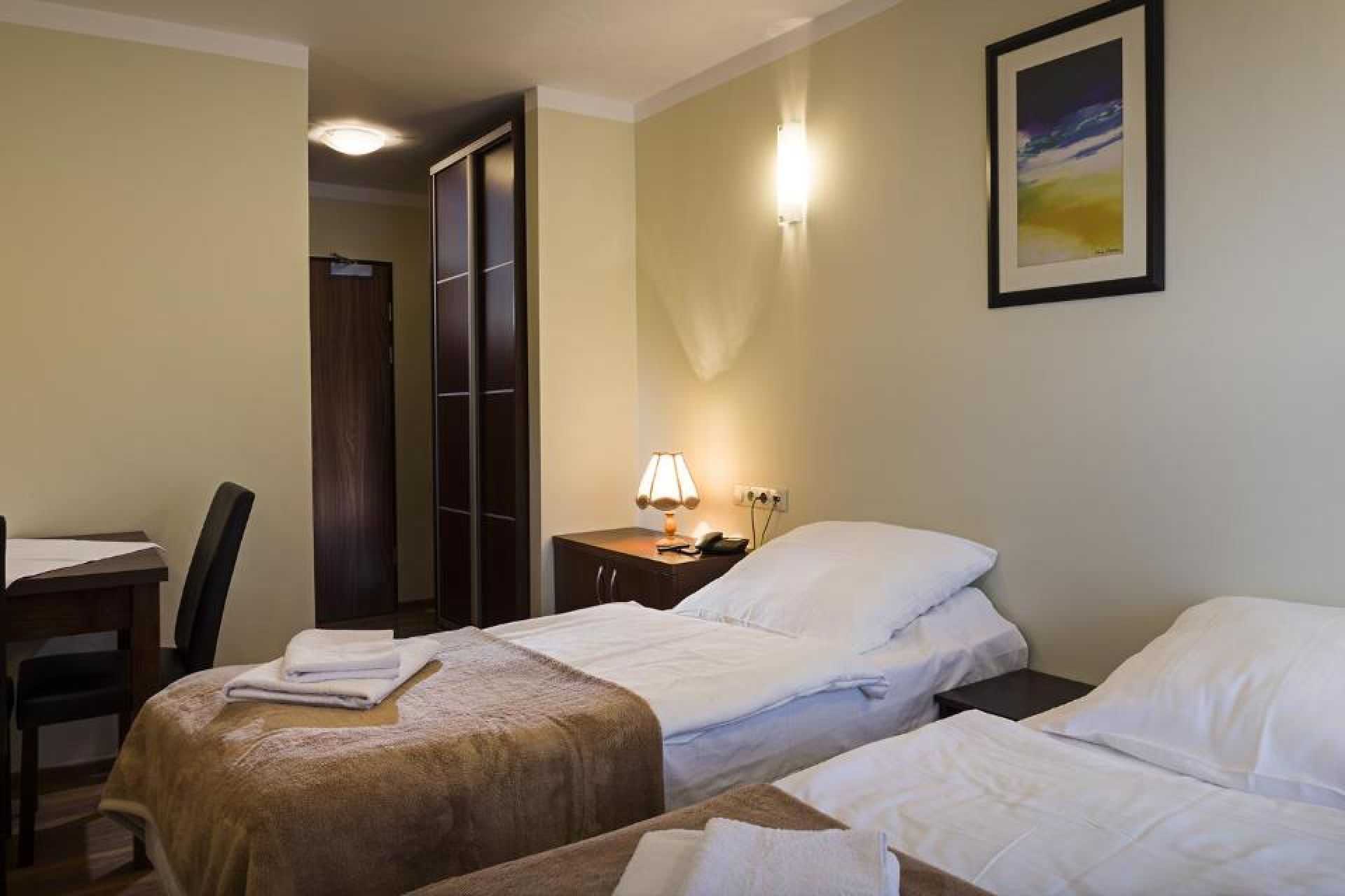 Do Państwa dyspozycji oddajemy 8 pokoi 2-osobowych typu Standard (bez balkonu), wyposażonych w dwa oddzielne łóżka w TV, ręczniki, suszarkę do włosów oraz telefon wewnętrzny.